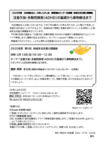 第5回地域生活支援公開講座「注意欠如・多動性障害(ADHD)の基礎から薬物療法まで」